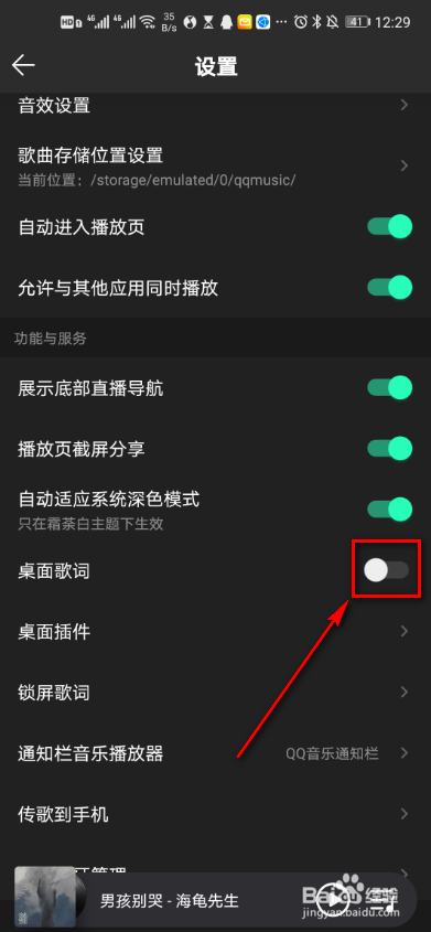 找到桌面歌词,点开右侧开关。