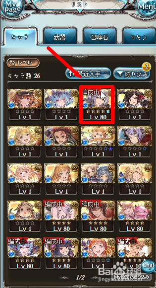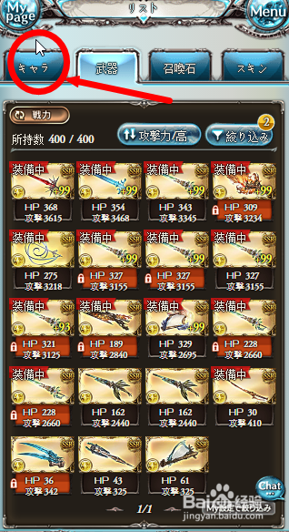 点击兵器左边的脚色列表。