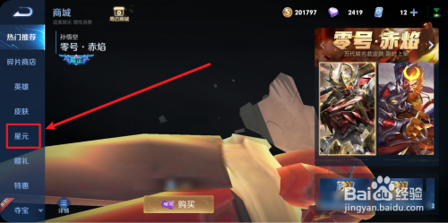 4、进入星元界面,然后点击全数商品