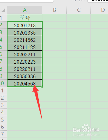 如图所示,要在这一列数字前添加字母。