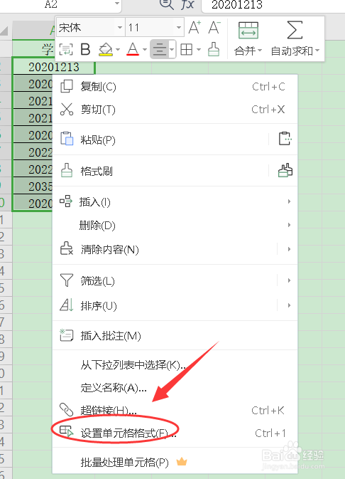 右击鼠标选择【设置单位格格局】。