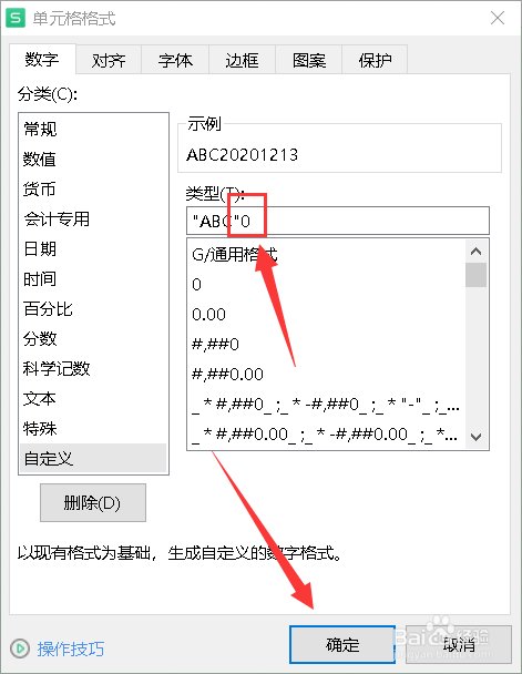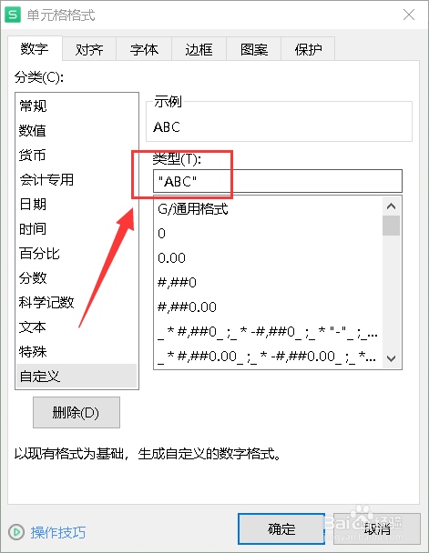 在类型处输入一对双引号,并在双引号内输入要添加的字母。