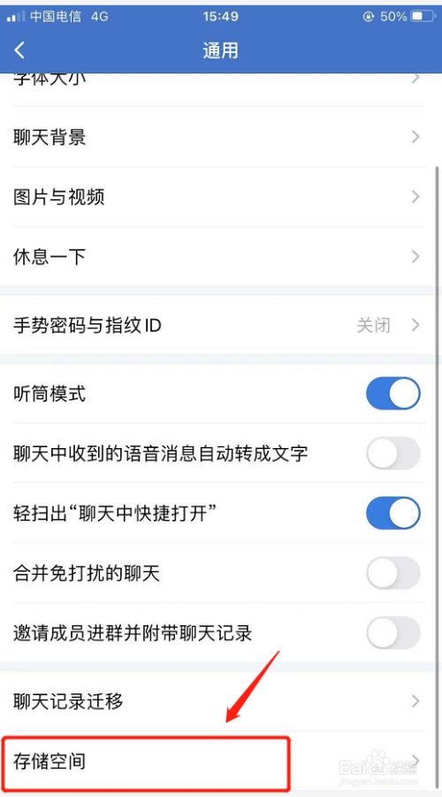 5、在通用页面,下拉屏幕找到【存储空间】点击进入,如下图;