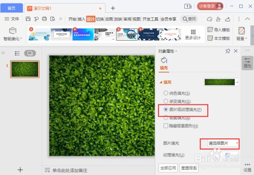 我们选择一张绿色叶子的图片填充为布景,如图所示。