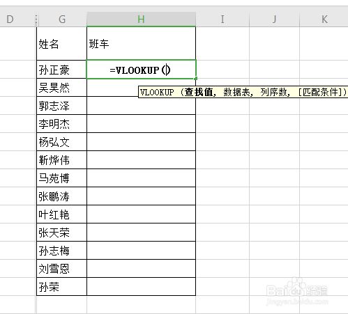 第二个是在哪个数据区域查询,这里我们选择表格中的姓名及班车列。