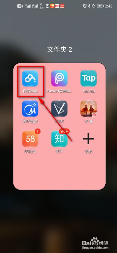 在手机桌面,点击百度网盘。