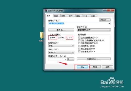 选择压缩格局,rar和zip都比力常用的压缩格局。这里以rar为例子。