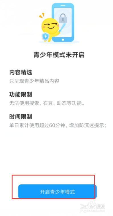 最后页面后我们点击开启青少年模式,然后设置密码即可