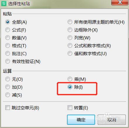 选中需要换算的数据区域,右击选择粘贴-选择性粘贴。