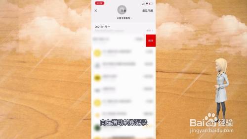 5、标的目的左滑动转账记实,最后点击删除就可以了。