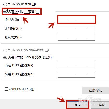 勾选【利用下面的IP地址】,选择【IP地址】即可设置,设置完当作点击【确定】。