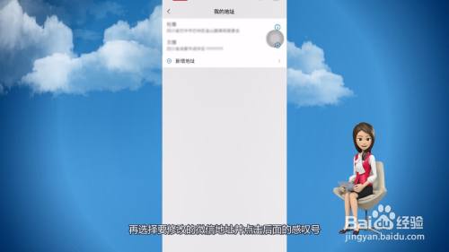 4、再选摘要点窜的微信地址并点击后面的感慨号。
