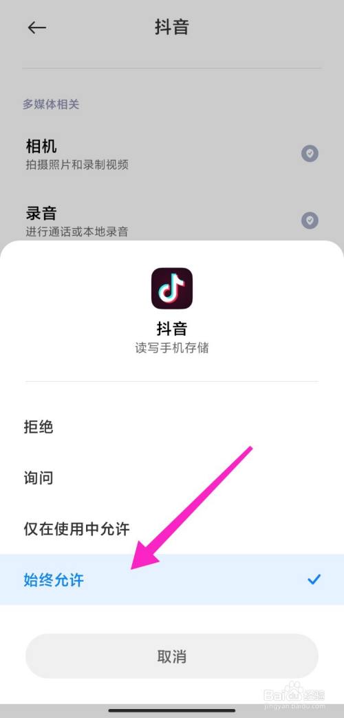 - 设置完当作后,抖音可以拜候相册照片了。