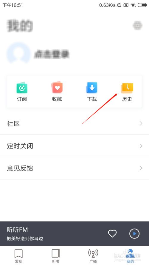 点击之后,听听FM的收听汗青记实就清空了,如图所示。
