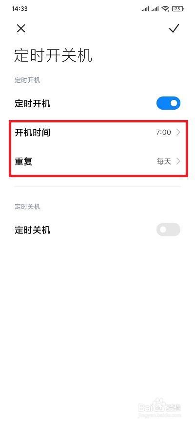 最后,设置按时关机时候和反复时候,这下我们就将红米手机的按时开关机设置好啦!