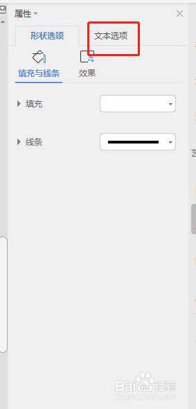 我们选中文本框,打开“属性”窗口,在属性窗口中点击“文本选项”。