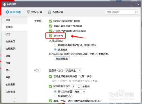 4、在设置页面了的【本家儿面板】选项中,找到【显示气候】,如下图;