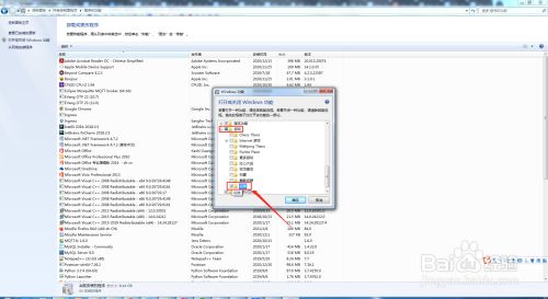 4.弹出框中找到游戏->纸牌,勾选上纸牌这个选项