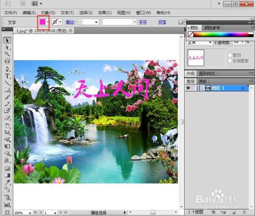 选中文字,给它填充上粉色;
