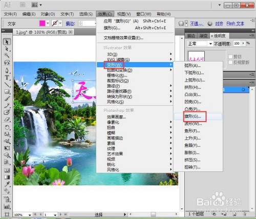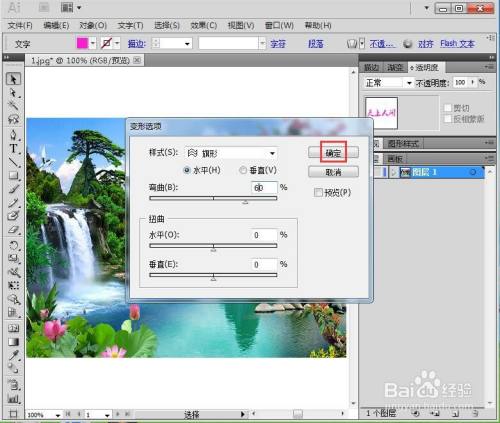 点击结果,选择变形下的旗形,设置好参数,按确定;