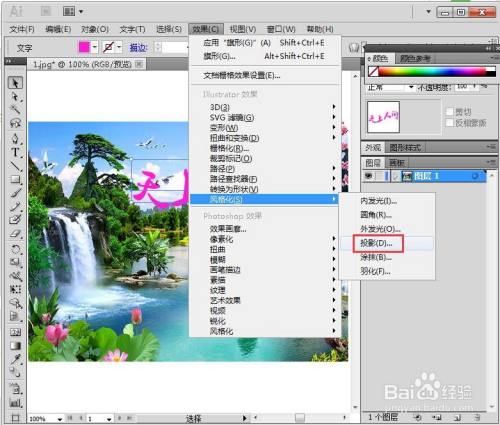 我们就给文字添加上了旗形和投影结果。