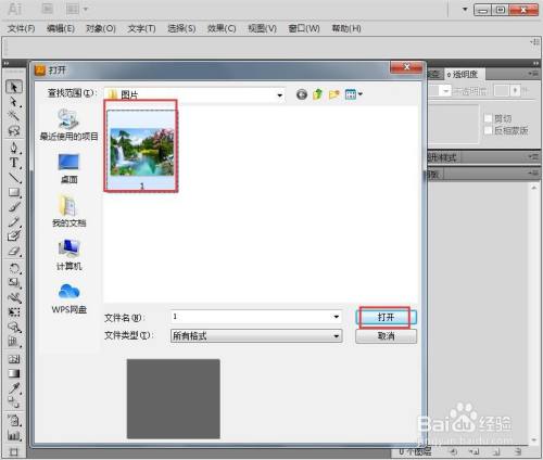按ctrl+o,选中一张图片,按打开;