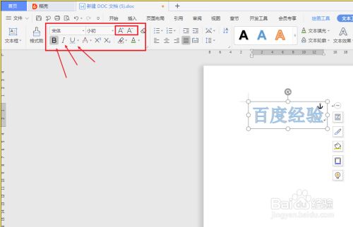 在左侧的功能区里,我们可以设置艺术字体大小,加粗,以及字体倾斜和下划线等根基格局。