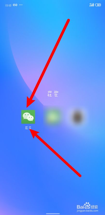 1、点击微信。