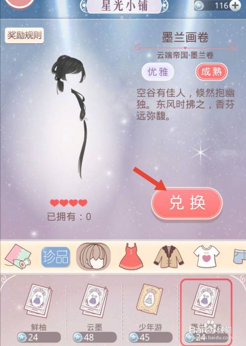 点击确认跳转到星光小铺去兑换墨兰画卷发型的设计图。