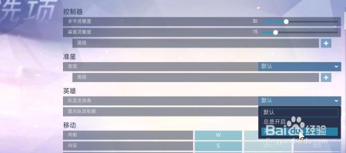 在节制选项中找到“队友生命条”选项,点击后面的“默认”选项。