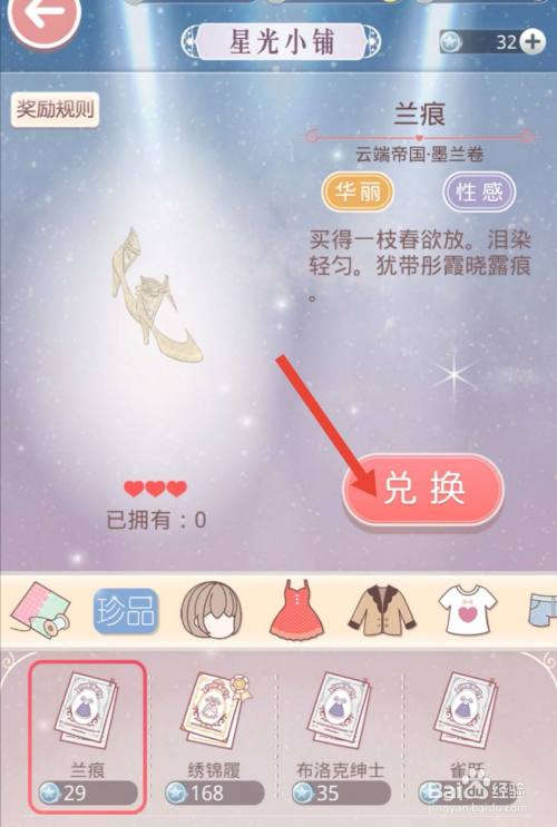 在星光小铺兑换兰痕高跟鞋设计图纸。