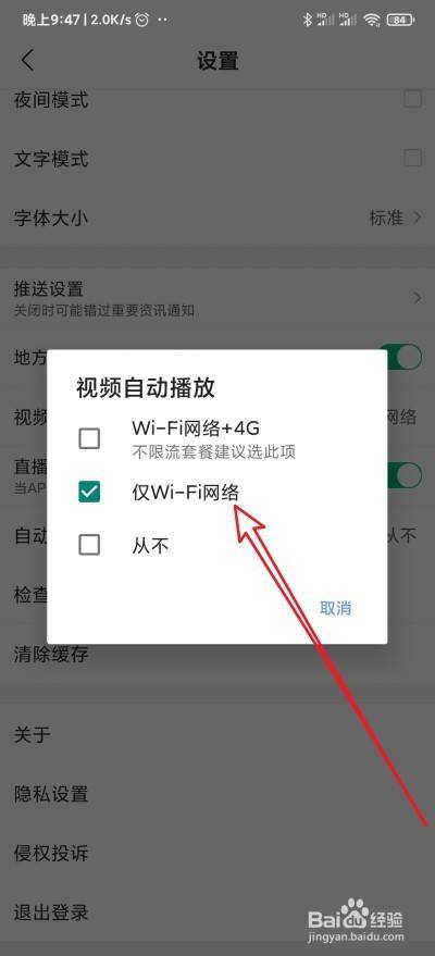 这样我们可以看到已经设置好视频仅在WiFi收集下主动播放了。