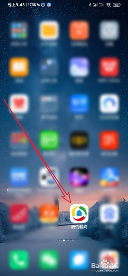 在手机屏幕上摆布滑动,点击腾讯新闻图标。