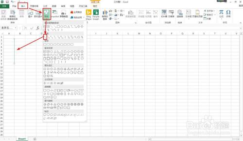 点击插入——外形——选择直线——沿着网格线的竖线来一条直线。