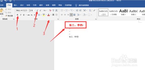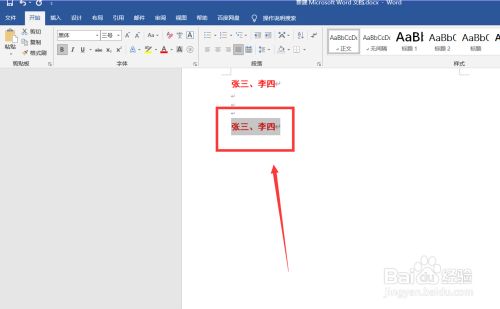 我们将第一个“张三、李四”加粗加大及改颜色。