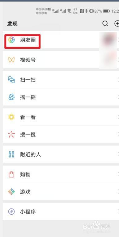 点击肆意一条朋友圈,再点击右上角的【三个点】。