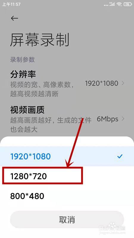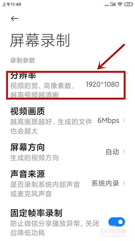 在新弹出页面,选择【录制参数】选项组下的【分辩率】选项点击