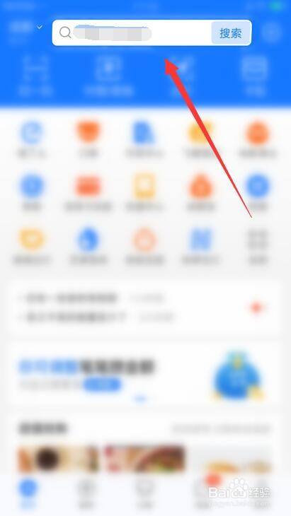 在支付宝首页点击上方的搜索框。
