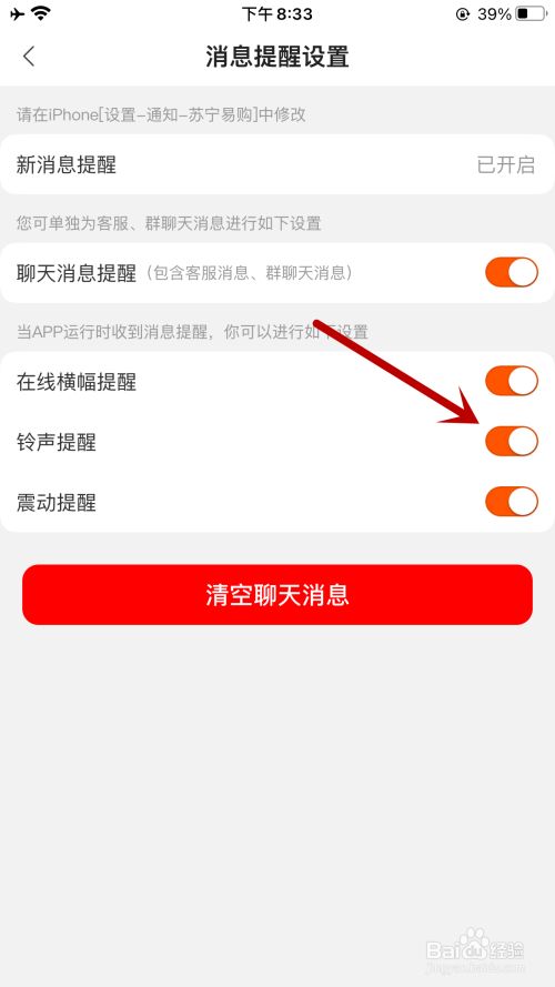 点击“铃声提醒”开关。