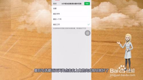 6、最后勾选比来三天并点击右上角的完成按钮就好了。