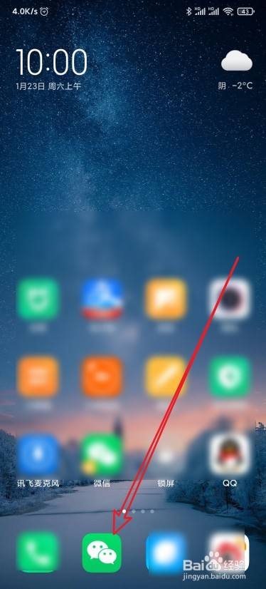 解锁手机屏幕后,点击桌面上的微信图标。