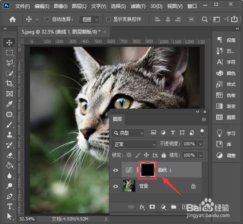 我们给曲线的蒙版填充为黑色,如图所示。