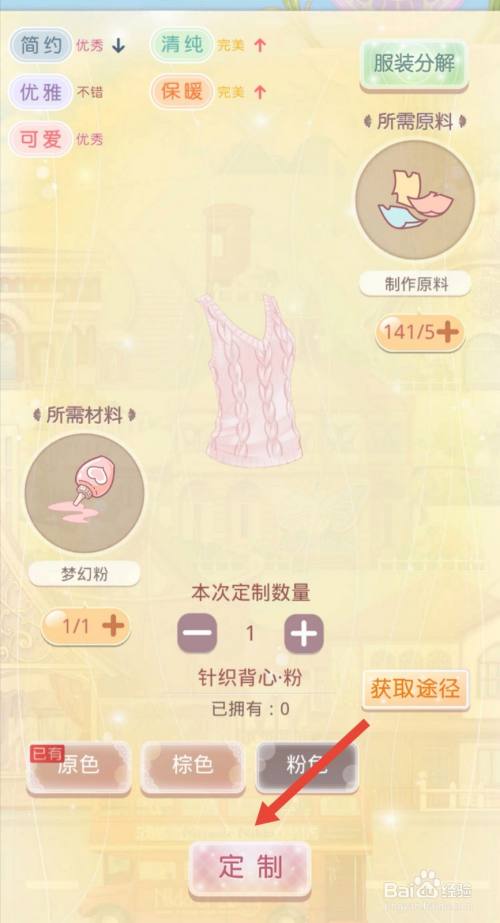 在高级定制界面点击粉色。