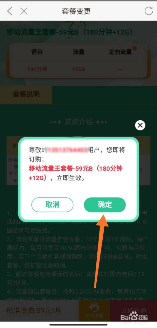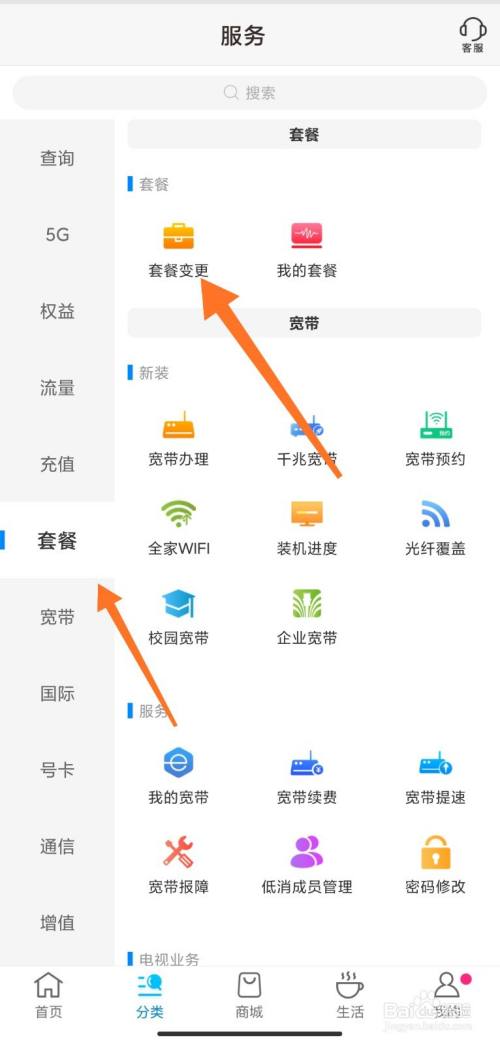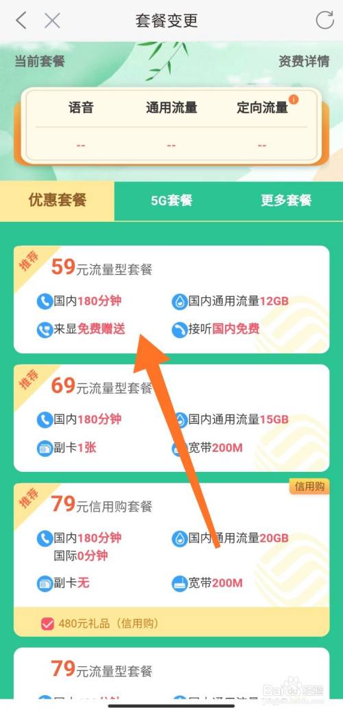 在套餐变动界面,找到想要变动的套餐,点击该套餐;
