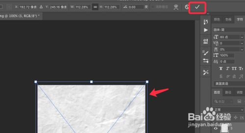 拖拽素材大小,笼盖住布景,点击对勾确定。