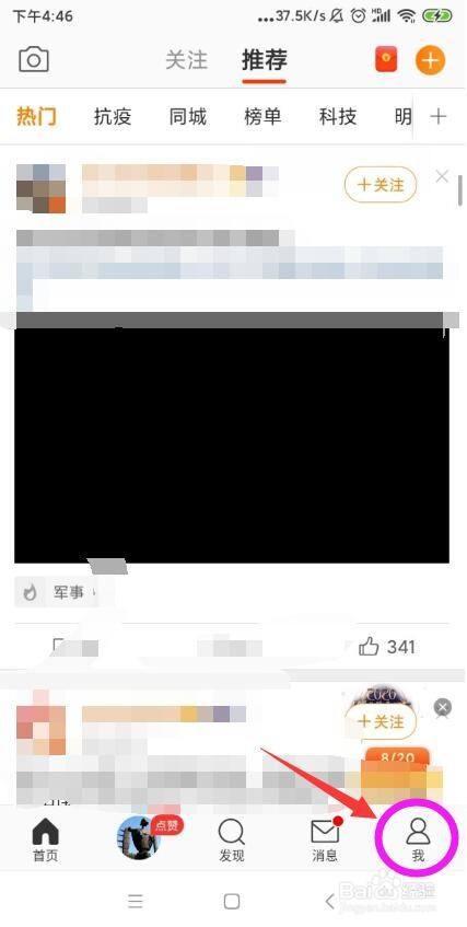 在微博的首页,点击下方菜单栏的最右边按钮“我”。