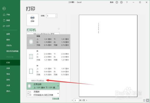 在打印页点击页面边距设置,选择【自界说页边距】。