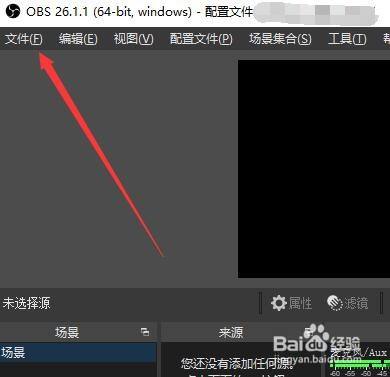 在“OBSStudio”窗口中,点击“文件”