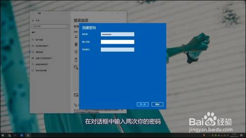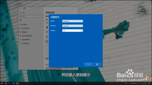 6、在对话框中输入两次您的密码,然后输入密码提醒。