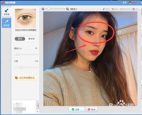 消弭黑眼圈后,看下结果再进行微调。最后点击“应用”保留。